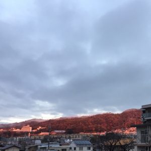 きれいな朝焼けが山を照らし、