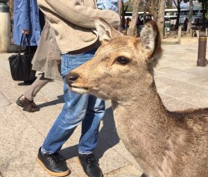 その中の一頭が鹿せんべい屋に侵入しようとしたところ、