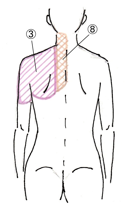 取穴:手厥陰心包経、足陽明胃経、足太陽膀胱経の経穴。