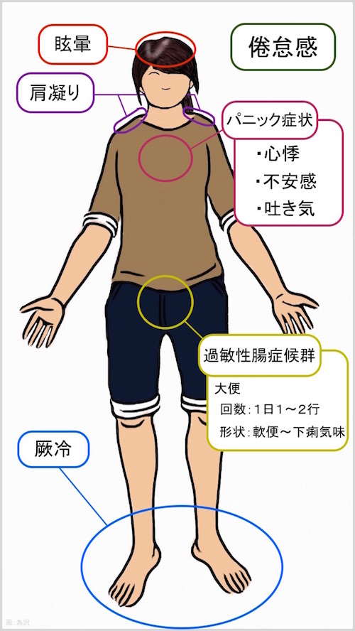 主な症状は、全身の冷え、頭痛、軽い眩暈があり、