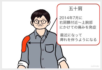 大阪 鍼灸院(心斎橋) 一鍼堂 >体験談と症例集>肩こり・五十肩・首のこりの漢方鍼灸症例集