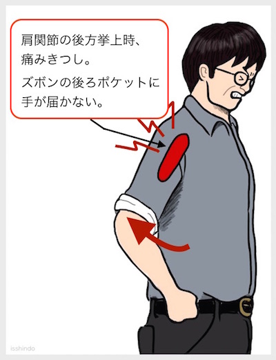 仕事でお店の商品を手に持って移動させることが多く、その際に肩が強く痛むとのこと。