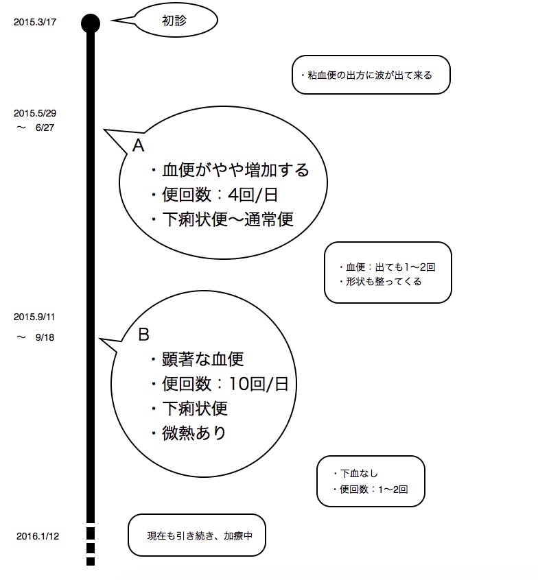 御依頼文にあるように、2010年の7月に潰瘍性大腸炎の症状を発症。