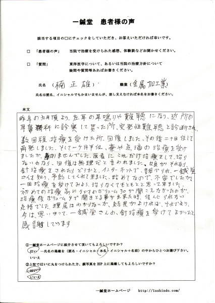 一鍼堂さんを知り、予約してくれました。