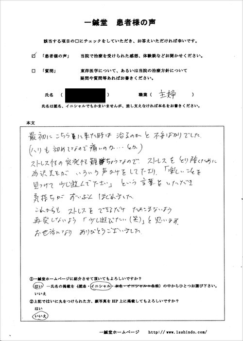 【体験談】 最初にこちらに来た時は 治るのかと不安ばかりでした。 (ハリも初めてなので痛いのか…とか)