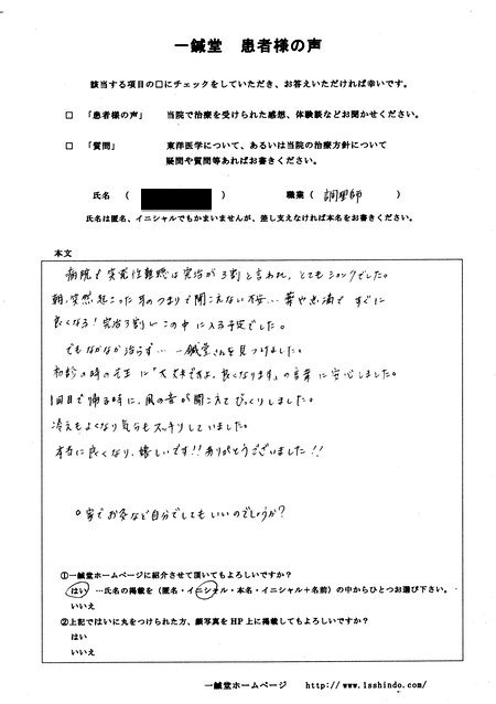 体験談に御協力頂きました患者様は、