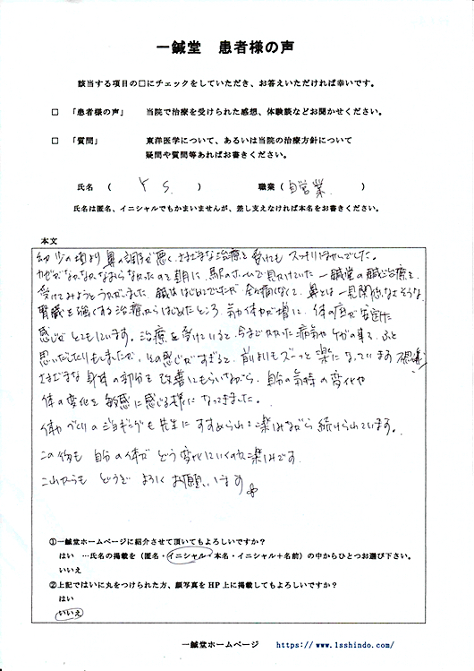 大阪府豊中市のY.S様 57歳 女性  自営業