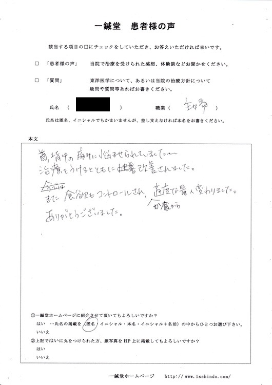 大阪府豊中市の匿名希望様の鍼灸治療体験談