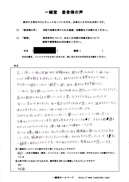 鬱病(うつ病)…大阪市西区のS.T様の鍼灸治療体験談