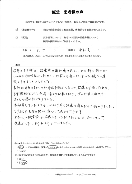 大阪府吹田市在住 Y.T様  27歳  職業:一般事務