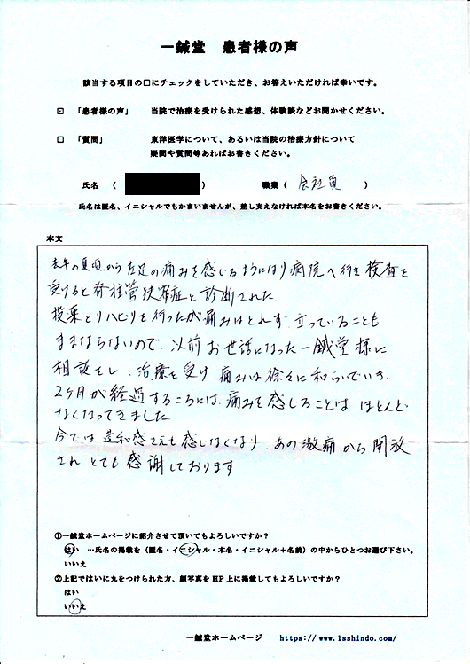 大阪市鶴見区のY.F様の鍼灸治療体験談