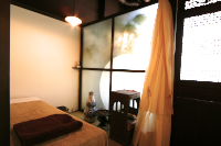 一鍼堂の玄関と施術室、それらをつなぐ回廊の写真です。