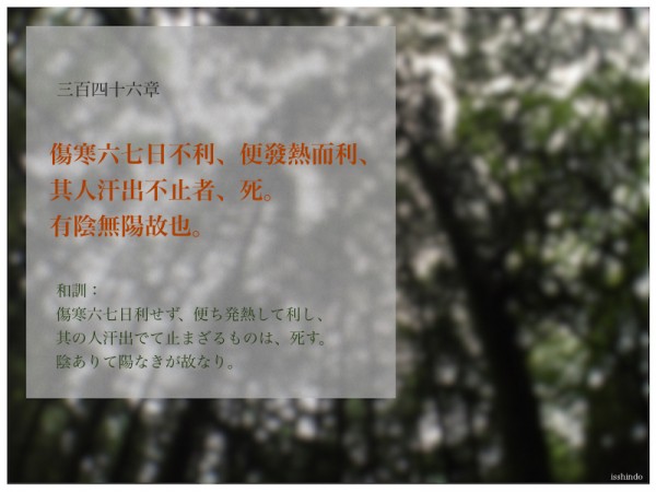 今回の傷寒論は弁厥陰病脈証并治 三百四十六章。