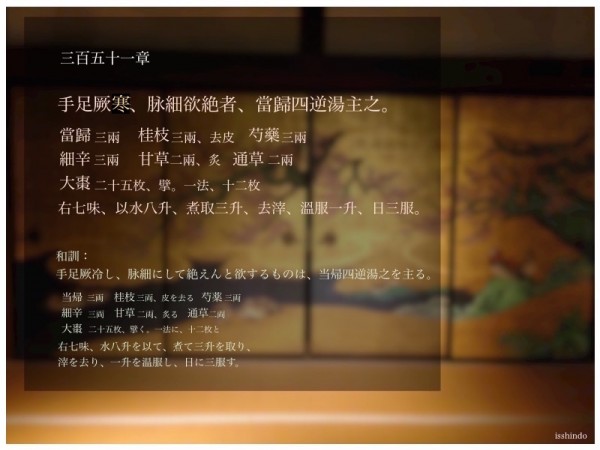 今回の傷寒論は弁厥陰病脈証并治 三百五十一章。