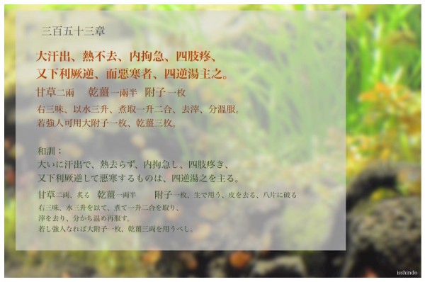 今回の傷寒論は弁厥陰病脈証并治 三百五十三章。