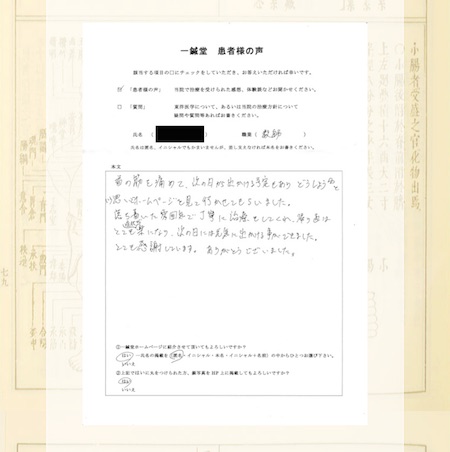 大阪市旭区のY.N様(担当鍼灸師:新川)