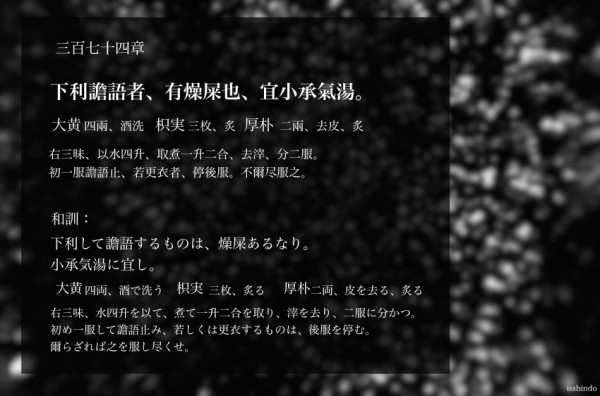 こちらを参照→【古医書】傷寒論: 弁陽明病脈証并治 二百十三章・二百十四章