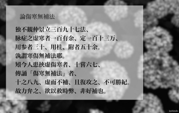 “傷寒には攻邪すべし”とする、この時代の風潮を批判しております。
