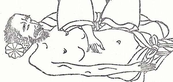 ・力を入れて触れて胸腹部の腫瘍や圧痛をみる(按)