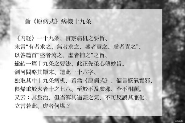病機に関する十九条は、病機の要旨を実によく察しているものである。