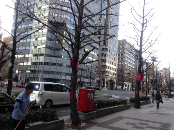 葉が落ちて寒々しさが伝わってきます。(12月末 御堂筋にて)