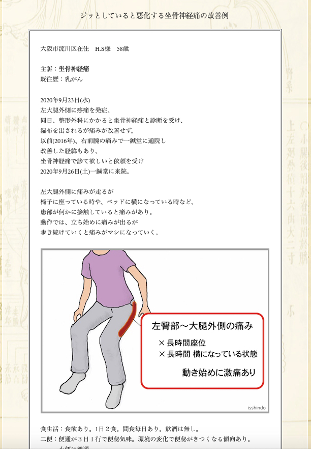 坐骨神経痛の鍼灸治療症例集に