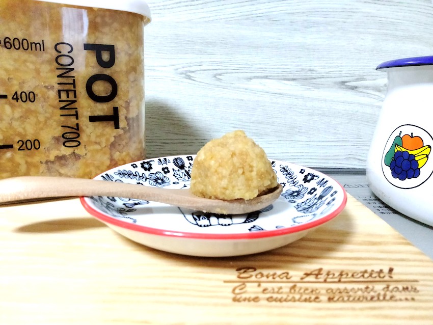 出来上がったお味噌は、なんの変哲もないツブツブしたお味噌ですが、