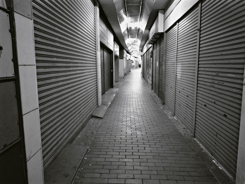 シャッターがおりた店が多かったですが、