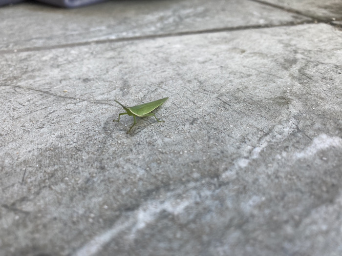 植物の隙間から緑のものがポンッと飛び出してきたので