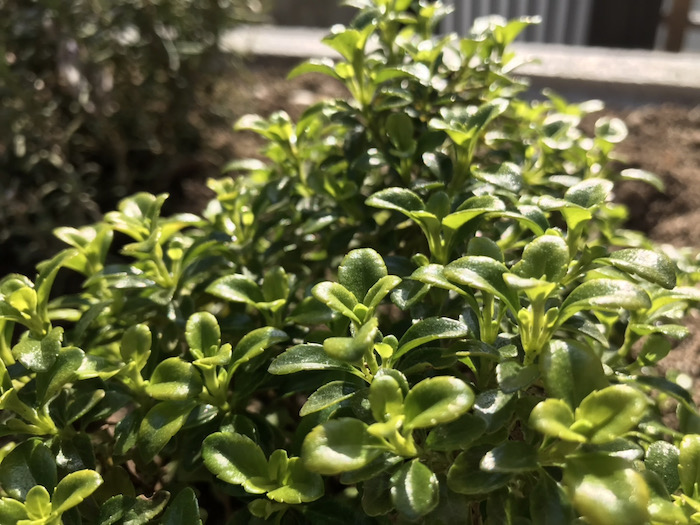冬越しできた何種類かのハーブや花だけだった花壇に新入りが加わりました。