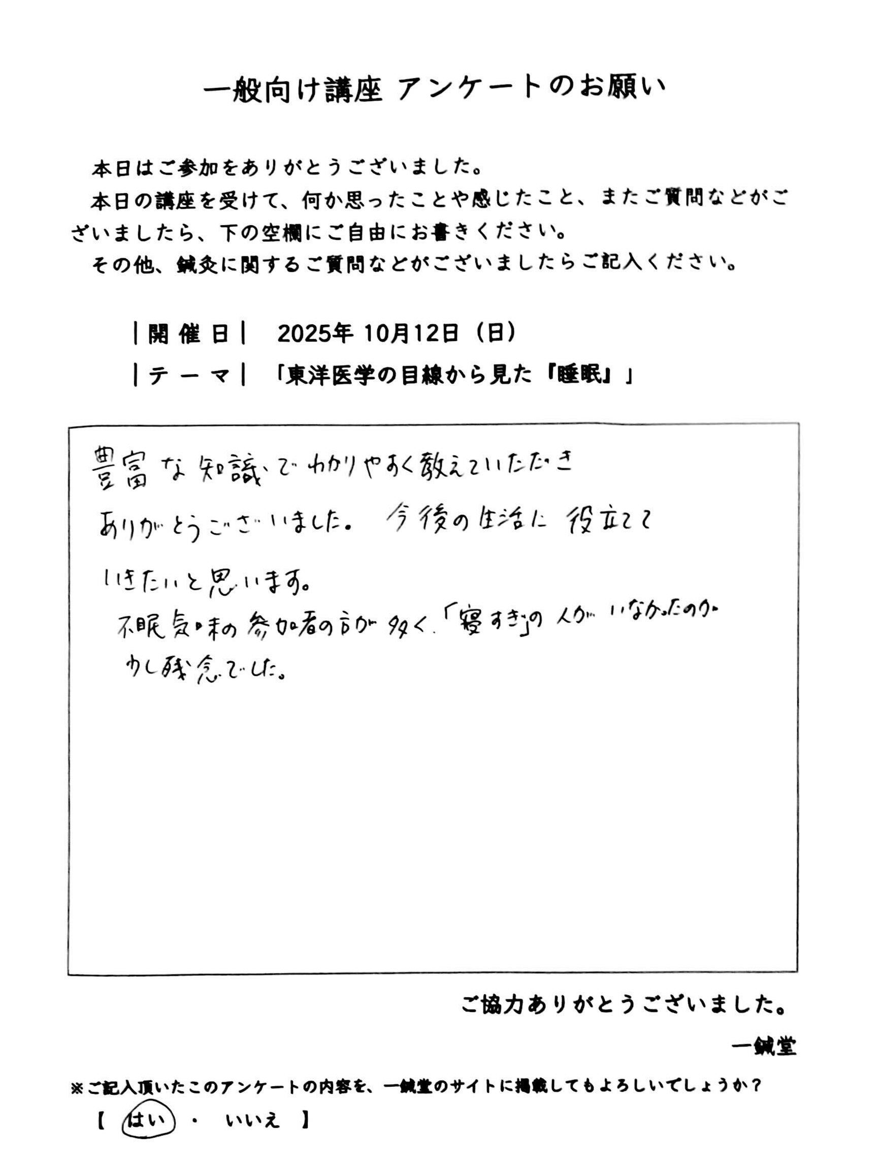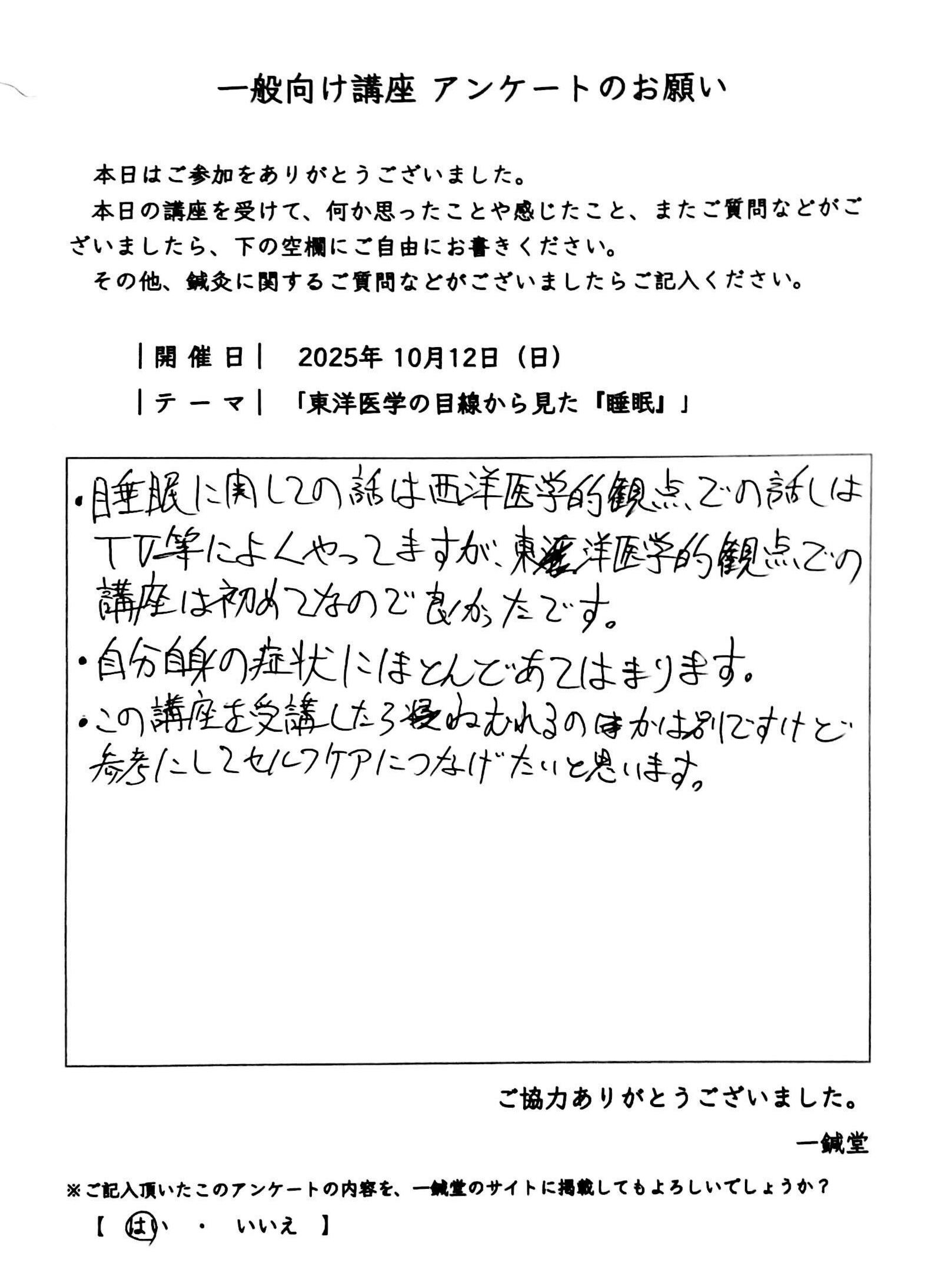 「東洋医学の目線から見た『睡眠』」を開催致しました。