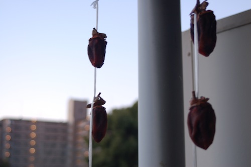 寒い日が続きそうですので、どうぞお身体おいとい下さい。干し柿くんも。