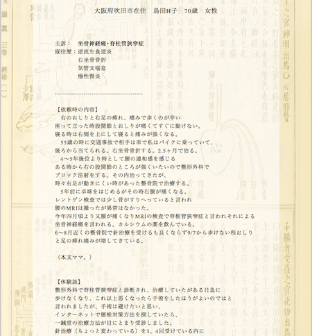 多発性硬化症の方の首痛・不眠症状(症例-3242)
