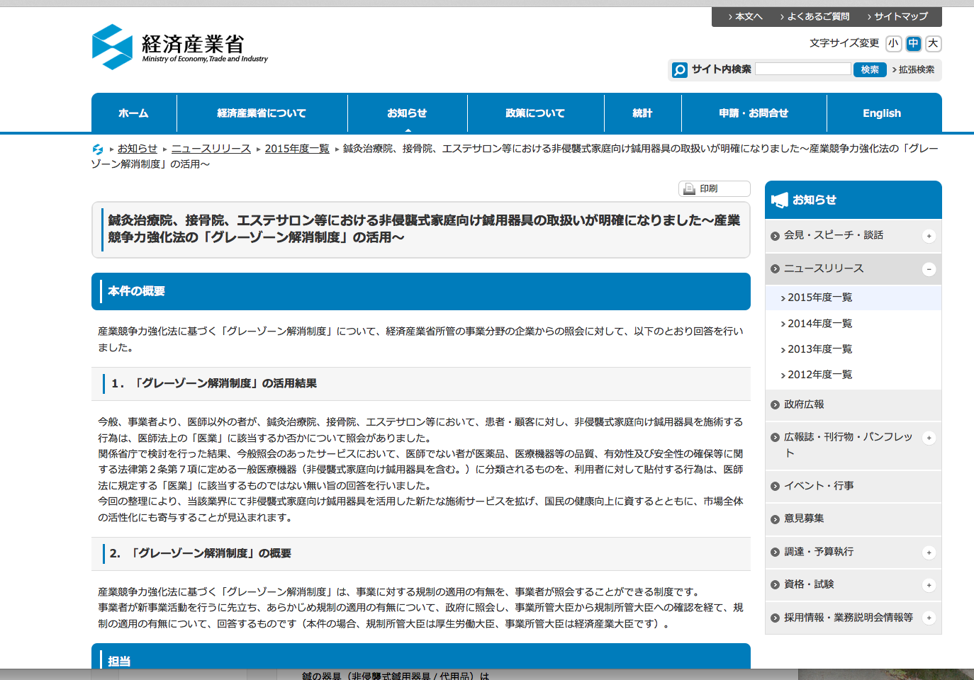経産省に聞いてみた!非侵襲式鍼用器具に言及する記事について〜