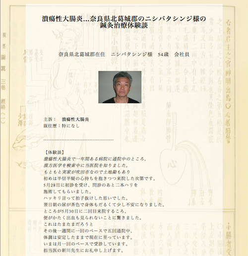 潰瘍性大腸炎でお悩みの大阪府豊中市のH.T様の鍼灸治療症例集です。
