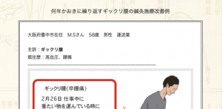 ギックリ腰で御悩みの大阪府豊中市のM.S様の鍼灸治療症例集です。