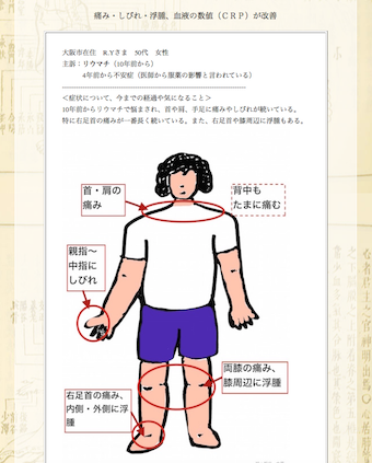 回帰性リウマチでお悩みの大阪市住吉区のN.H様の鍼灸治療症例集です。