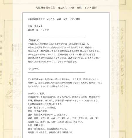 【症例集】リウマチ: 大阪府高槻市の匿名希望様