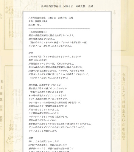 【症例集】潰瘍性大腸炎: 兵庫県西宮市のM.H様
