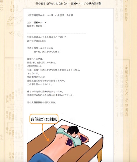 頚椎ヘルニアでお悩みの大阪市鶴見区のN.K様の鍼灸治療症例集です。