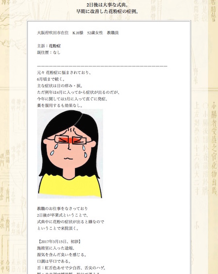 花粉症でお悩みの大阪府吹田市のK.H様の鍼灸治療症例集です。
