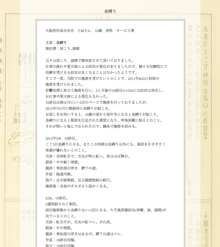 金縛りでお悩みの大阪府和泉市のT.M様の鍼灸治療症例集です。