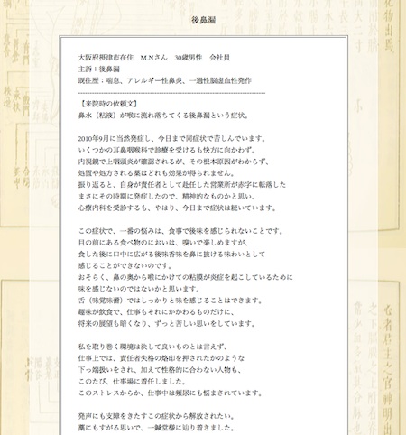【症例集】後鼻漏: 大阪府摂津市のM.N様