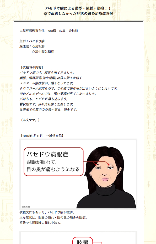バセドウ病でお悩みの大阪府高槻市のNao様の鍼灸治療症例集です。