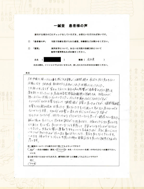 鍼をした直後から御体スッキリすると同時に耳の調子も良くなっておりました。
