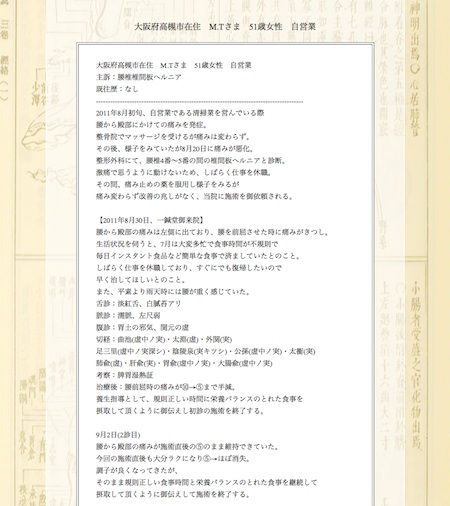 腰椎椎間板ヘルニアでお悩みの大阪府高槻市のM.T様の鍼灸治療症例集です。