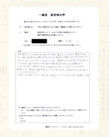 モートン病でお悩みの大阪府高槻市のK.K様の鍼灸治療体験談です。