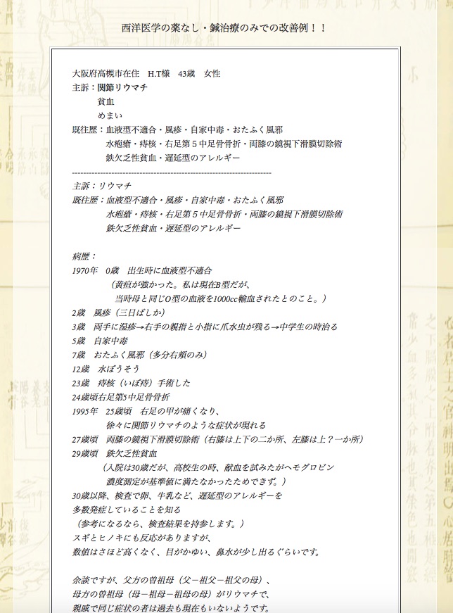 リウマチでお悩みの大阪府高槻市のH.T様の鍼灸治療症例集です。