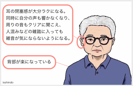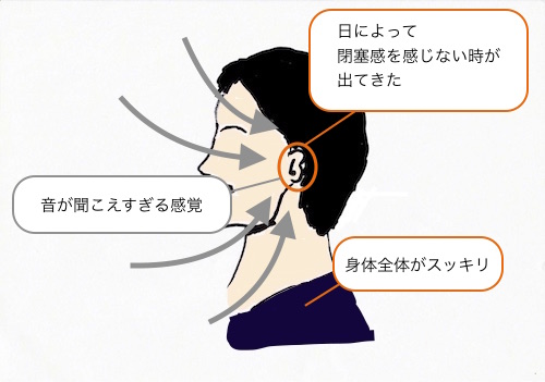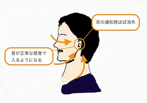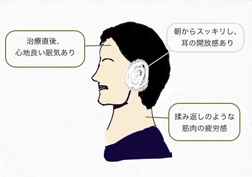 治療後:施術後、耳に張った膜が薄れていく感覚があり。